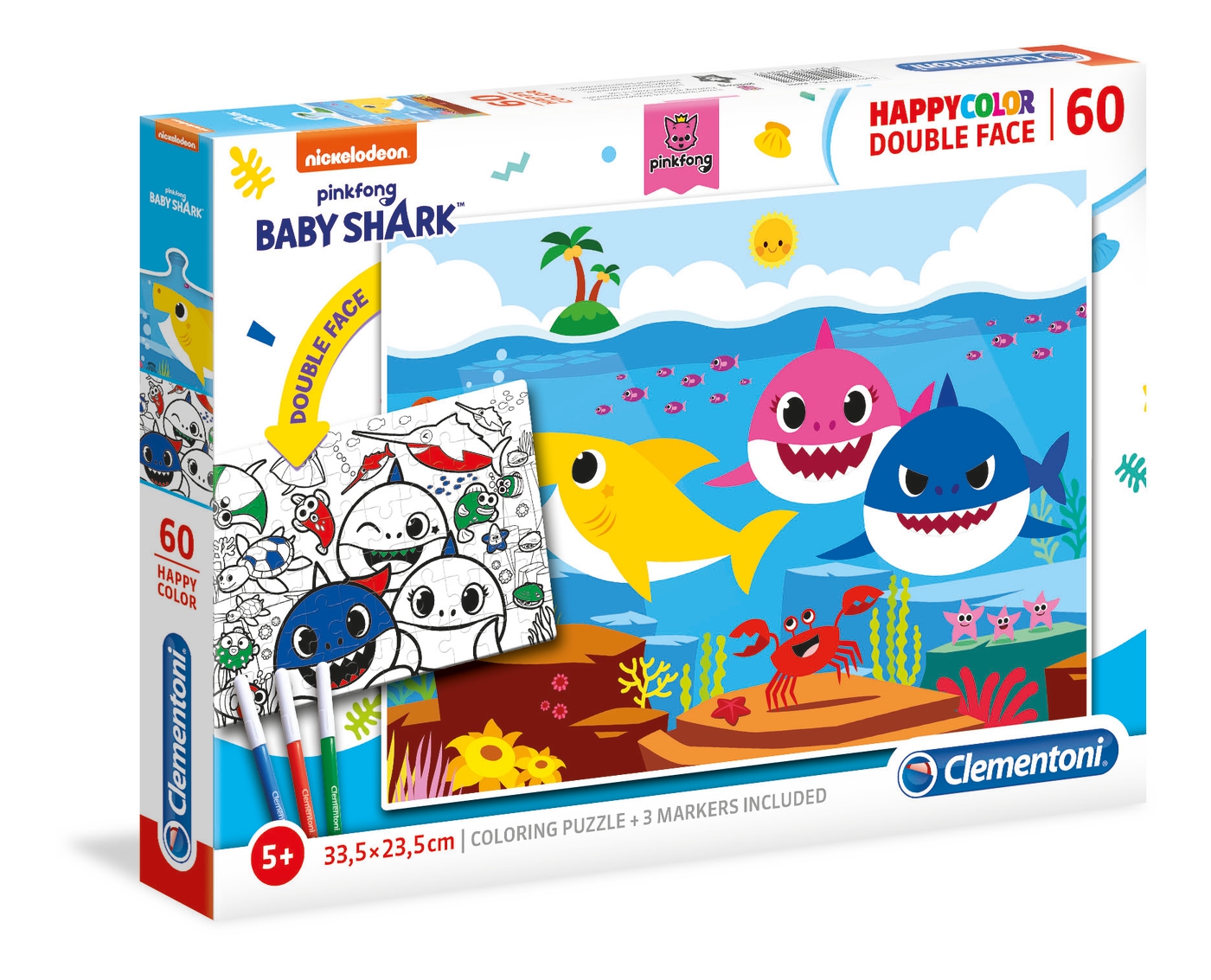 Baby Shark 60 Pcs Happy Color Double Face Clementoni